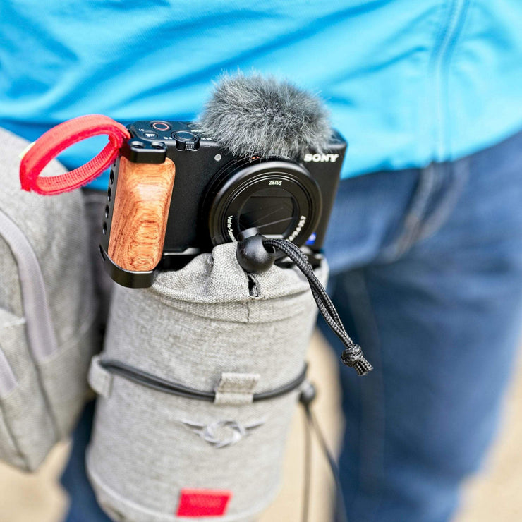 Als Youtuber, Vlogger und Videograf*in kennst du das: Du willst in der Drehpause die Hände frei haben und weißt nicht, wohin mit dem Gimbal. An die Hüfte natürlich! So wie ein Dachdecker sein Werkzeug, verstaust auch du deine Ausrüstung mit dem GIMBAL-BOTTLE Holder an der Hüfte, die so jederzeit griffbereit, und nie im Weg ist.